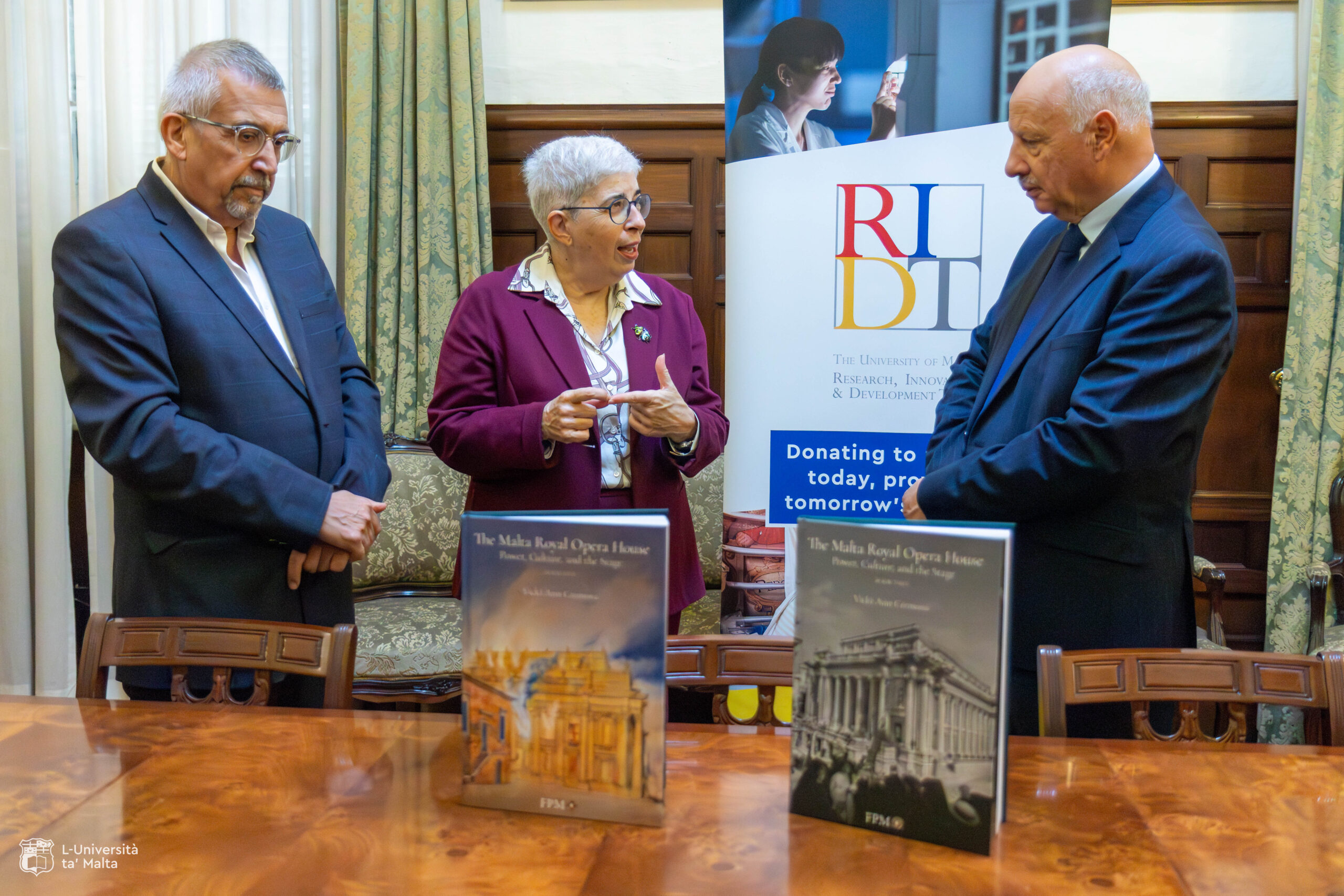 On Friday 12 December 2025, the Rector of the University of Malta, Prof Alfred Vella, received a copy of “The Malta Royal Opera House – Power, Culture, and the Stage.”
