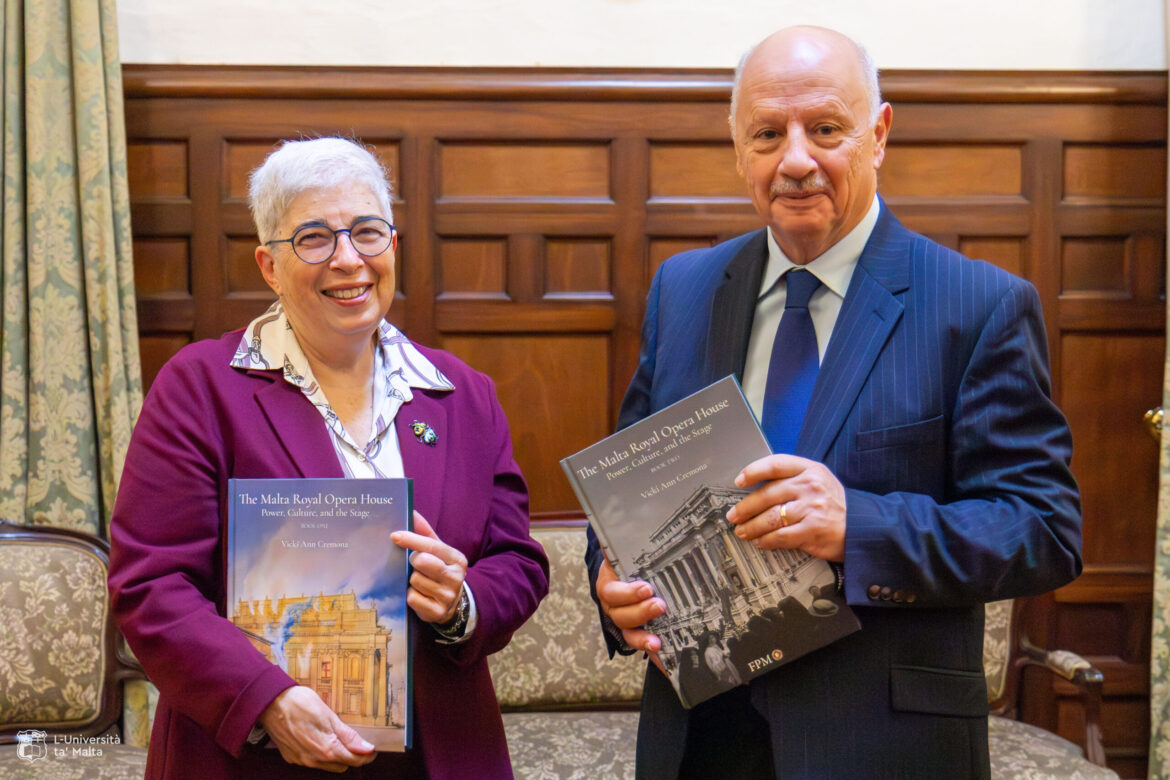 On Friday 12 December 2025, the Rector of the University of Malta, Prof Alfred Vella, received a copy of “The Malta Royal Opera House – Power, Culture, and the Stage.”